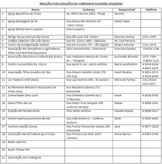 Veja a lista dos locais cadastrados para receber as doações: