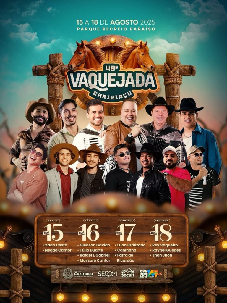 “Estamos preparando uma festa à altura da nossa história e do nosso povo. Será a maior vaquejada que Caririaçu já viu! Convidamos todos os caririassuenses e amigos da região para viver esse momento conosco”, declarou o vice-prefeito.