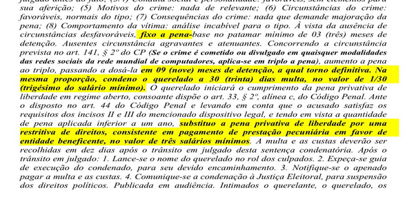 O juiz destacou ainda que, ao divulgar tais informações em suas redes sociais, o réu fez uso de meio que amplia o alcance do dano à reputação, configurando difamação agravada, conforme o artigo 141, inciso III, do Código Penal.