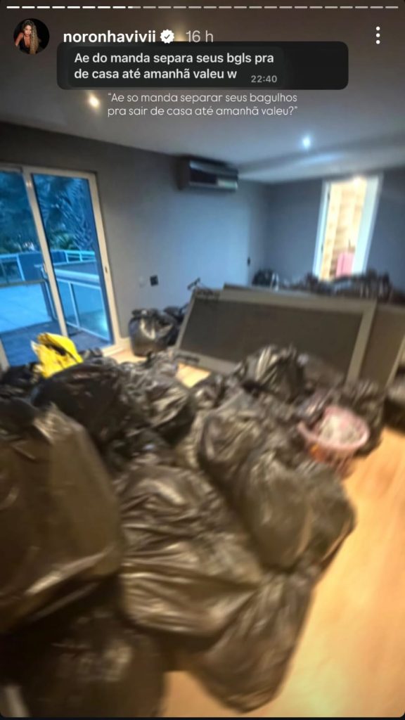 A empresária Vivi Noronha, mostrou por meio das suas redes sociais, que o cantor Mc Poze colocou seus pertences em sacos de lixo e deu um prazo para sair da sua casa. O casal anunciou a separação no início do mês de novembro