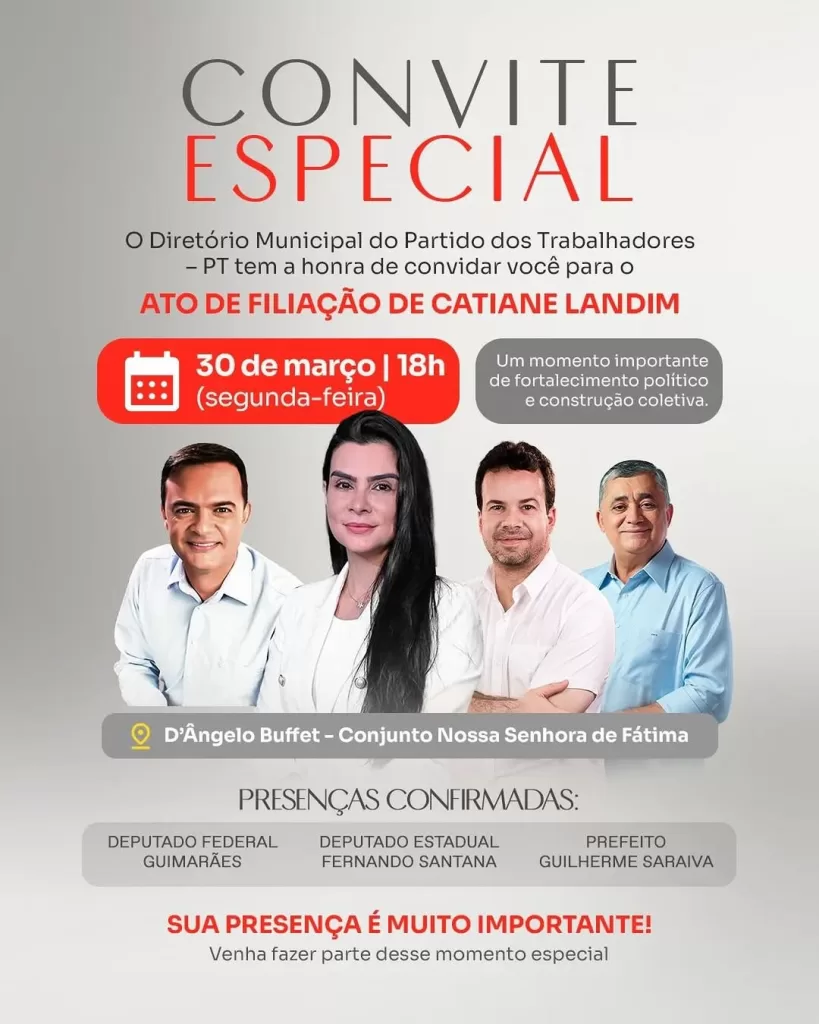 A decisão recebeu apoio de figuras de peso, como o Ministro da Educação, Camilo Santana (PT). Catiane Landim conta ainda com o apoio do prefeito de Barbalha, Guilherme Saraiva (PT).